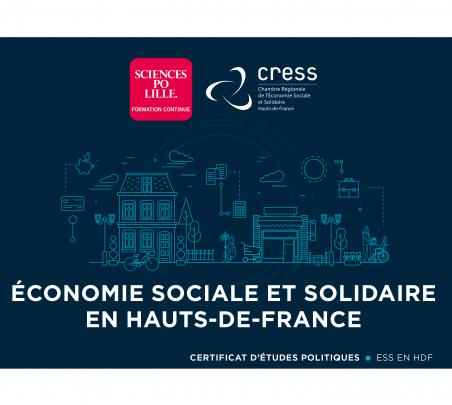 Formation régionale certifiante issue du partenariat entre Sciences Po Lille et la Chambre régionale de l’économie sociale et solidaire des Hauts-de-France.Fort de son réseau et de son expérience, la CRESS Hauts-de-France a identifié un besoin de montée en compétences et en connaissances pour les entrepreneurs et les responsables de l’économie sociale et solidaire. Sciences Po Lille (9 rue Auguste-Angelier à Lille), acteur reconnu de la formation continue, propose aujourd’hui un cycle de formation innovant, embrassant la globalité des enjeux de ce pan essentiel de l'activité économique et sociale de notre région. Il se présente comme un ensemble de cycles thématiques et complémentaires pour un public varié. Chacun et chacune pourra y trouver les compétences adaptées à ses activités et à ses besoins pour les développer, de l’entrepreneur débutant au dirigeant confirmé, du bénévole accompagnant à l'élu en charge de l'ESS.