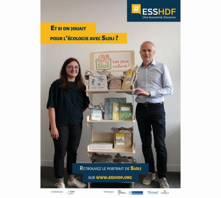 Depuis 2019 à Roubaix, Sloli crée des jeux pour sensibiliser les enfants au développement durable. Ses cofondateurs, Morgane de Villers et François-Xavier Poulain, poursuivent cette même ambition pour développer cette société commerciale de l’économie sociale et solidaire : une fabrication en France, durable et zéro déchet.C’est au cœur du site Blanchemaille, à proximité de la gare de Roubaix, que la jeune société Sloli s’est fixée. Le géant La Redoute qui y avait ses locaux a fait place à cette fourmilière d’entreprises numériques qui besognent autour du commerce digital, retail et technologies de l’immobilier, accompagnée par EuraTechnologies. « Ici, nous avons bénéficié de l’accompagnement de l’incubateur Blanchemaille, indique Morgane de Villers, cofondatrice avec François-Xavier Poulain de Sloli, et nous continuons à apprendre des multiples échanges avec ces start-ups, même si elles sont éloignées de nos activités ».