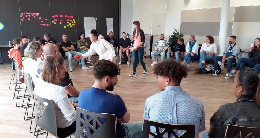 Dans la salle de formation qui prépare les animateurs CJS avant l'été 2022, trône cette affiche qu’ils ont désormais ancrée en tête : « Faire pour. Faire avec. Faire faire. Et laisser faire. » Autant de petits pas qui feront prendre à ces adolescents le chemin de l’entrepreneuriat et pourquoi pas l’économie sociale et solidaire.
