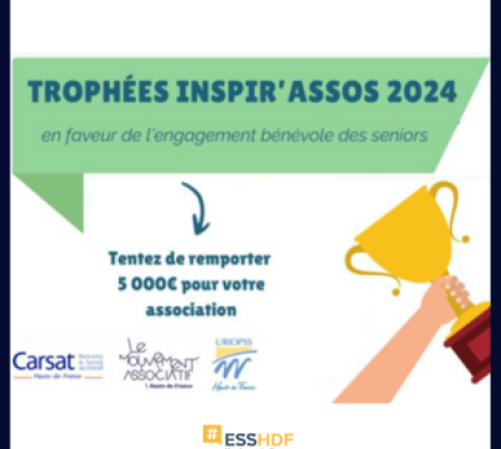 La Carsat Hauts-de-France, en partenariat avec le Mouvement Associatif des Hauts-de-France et l'URIOPSS Hauts-de-France, a le plaisir de vous inviter à participer à la 1ère édition TROPHÉES INSPIR'ASSOS 2024.