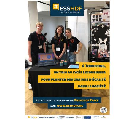 Un trio de lycéens pour planter des graines d’égalité dans la sociétéDurant deux ans, Irina, Maïlys et Robin ont cultivé un projet entrepreneurial au sein de leur lycée professionnel Le Corbusier à Tourcoing, dirigé par Nathalie Delprat. Accompagné par l’association Enactus et l’équipe pédagogique, le jeune trio a creusé et semé les questions de l’égalité des sexes et de l’impact écologique pour faire pousser : « Prince of Peace ». Une marque et un vêtement unisexe qui a remporté le 1er prix régional Enactus récompensant les jeunes qui se mobilisent et agissent pour la société.