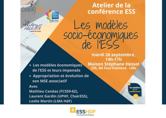 Un atelier organisé dans le cadre des ateliers de la 4eme conférence régionale de l'ESSCet atelier ouvert à tou.te.s et gratuit traitera des modèles socio-économiques des associations et structures de l'ESS : comment analyser et faire évoluer un MSE ?
