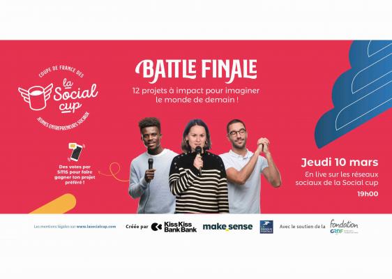 Durant cette 8eme édition de la Social cup, "12 projets à impact" sélectionnés pour l'année 2022 s'affronteront lors d’une battle finale de pitch. Afin d'encourager et d'élire le lauréat ou la lauréate de cette édition, rendez-vous le jeudi 10 mars 2022 de 19h à 20h15. L'événement sera diffusée en live sur Facebook et sur le site internet.