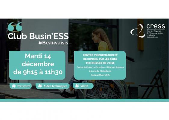 La Chambre Régionale de l’Economie Sociale et Solidaire des Hauts-de-France a le plaisir de vous inviter pour le prochain Club Busin’ESS #Beauvaisis qui aura lieu le jeudi 14 décembre de 9h 15 à 11h30.