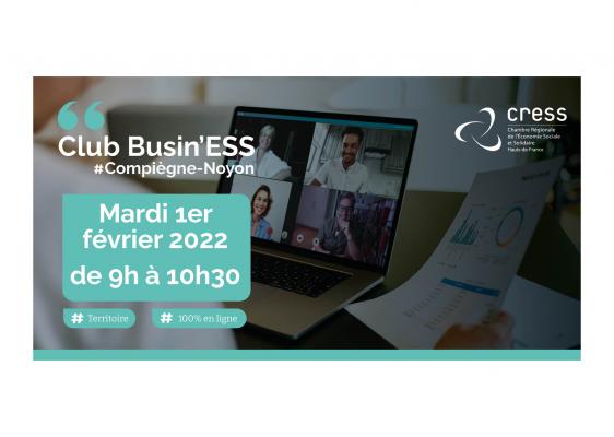 La Chambre régionale de l'Economie Sociale et Solidaire Hauts-de-France organise son prochain club Club Busin’ESS du territoire Compiègne-Noyon le mardi 1 février en visio de 9h à 10h30.
