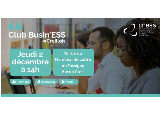La Chambre Régionale de l’Economie Sociale et Solidaire des Hauts-de-France a le plaisir de vous inviter pour le prochain Club Busin’ESS #Creillois qui aura lieu le jeudi 2 décembre de 14h à 16h/16h30.