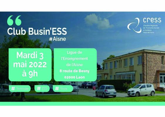 ?Mardi 3 mai, le Club Busin'ESS de l'Aisne réunira les acteurs de l'Economie Sociale et Solidaire et les acteurs hors ESS pour échanger sur la dynamique de l'ESS sur le territoire de l'Aisne à la ligue de l'Enseignement de l'Aisne (8 route de Besny à Laon)