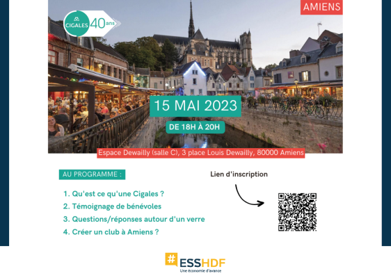 Club Cigales à Amiens : donnez du sens à votre épargne, devenez investisseur.se solidaire !Vous souhaitez donner du sens à votre épargne ? Vous vous demandez comment avoir de l’impact sur votre territoire à votre échelle tout en faisant vivre vos valeurs ? Vous souhaitez vivre une aventure citoyenne et conviviale ? Les clubs Cigales sont faits pour vous !