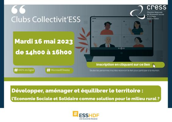 ?Pour favoriser la coopération entre les participants, les sensibiliser sur les questions de l’Economie sociale et solidaire et monter en compétences sur des sujets thématiques.?Pour vous inscrire, cliquez sur ce lien : https://framaforms.org/inscription-au-club-collectivitess-de-la-cress-hauts-de-france-16-mai-2023-1677156161