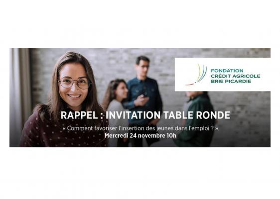 A l'occasion des résultats du 1er appel à projets de la Fondation Crédit Agricole Bris Picardie, aura lieu une table ronde sur le thème "Comment favoriser des jeunes dans l'emploi ?".