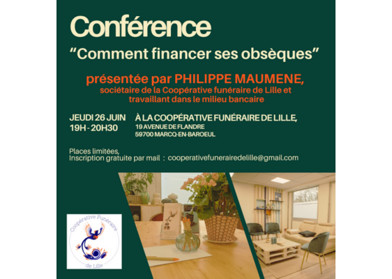 Evénement gratuit et ouvert à tous, places limitées donc inscription obligatoire par mail à cooperativefunerairedelille@gmail.com ou au 06.75.18.68.78.