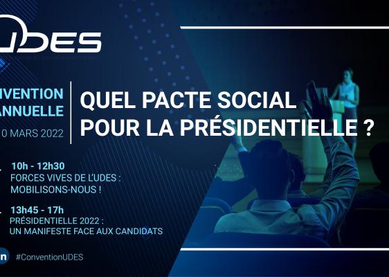 L’UDES – Union des employeurs de l’économie sociale et solidaire – organise sa Convention annuelle sur le thème « Quel pacte social pour la présidentielle ? » le jeudi 10 mars 2022 de 10h à 17h au Comité national olympique et sportif français (Paris 13e).