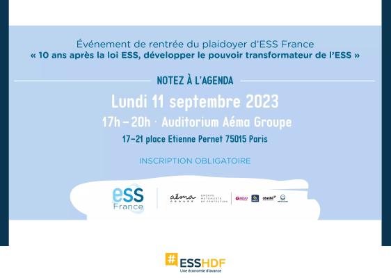 Evénement de rentrée « 10 ans après la loi ESS, développer le pouvoir transformateur de l'ESS »ESS France, en partenariat avec Aéma Groupe, organise son événement de rentrée « 10 ans après la loi ESS, développer le pouvoir transformateur de l'ESS » le lundi 11 septembre 2023, dès 17h à Paris.