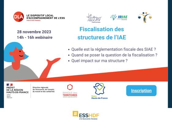 Fiscalisation des SIAELe DLA Hauts-de-France organise avec l’IRIAE Hauts-de-France un webinaire à destination des SIAE sur la thématique de la fiscalisation le mardi 28 novembre de 14h à 16h. Maître Mariama Diop, avocate au barreau de Lille, spécialisée en droit des associations interviendra sur les points suivants :