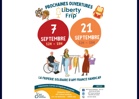 ? À l'occasion de la rentrée scolaire, APF France handicap ouvre ce samedi Liberty Frip', sa friperie solidaire où chacun peut renouveler sa garde-robe tout en faisant un geste pour la planète.?