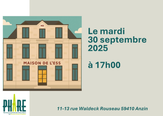 Les organisations Co-présidentes de PHARE - Pôle Hainaut-Cambrésis des Acteurs Réunis de l'Economie Sociale et Solidaire ont le plaisir de vous convier à ce temps fort dédié à l'ESS sur notre territoire.
