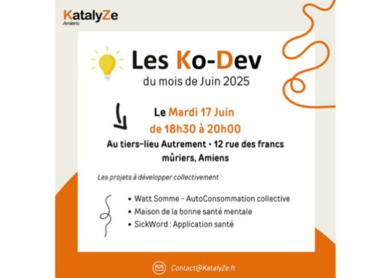 Envie de donner un coup de main à des initiatives locales ? ➡️ Participez au prochain Ko-Dev de juin ! Trois projets seront présentés en séance d’intelligence collective afin de les aider à ouvrir leurs horizons et explorer de nouvelles perspectives. Venez partager vos idées, votre regard, votre énergie ! Les projets à découvrir :