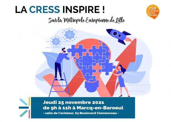 A l'occasion du Mois de l'ESS, La Chambre régionale de l'Economie Sociale et Solidaire des Hauts-de-France, la Métropole Européenne de Lille et la Ville de Marcq-en-Baroeul vous donnent rendez-vous : le jeudi 25 novembre de 9h à 11h, 63 rue Clemenceau, salle de l'aviateur à Marcq-en-Baroeul*.