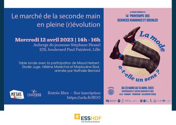 La (r)évolution du marché de la seconde main textile, entre évolution des pratiques et concurrence du privé lucratif, quelles opportunités pour l’ESS ?Dans le cadre du 14ème printemps des SHS "La mode a-t-elle un sens", organisé par la MESHS, la ChairESS organise une table ronde autour de "La (r)évolution du marché de la seconde main textile, entre évolution des pratiques et concurrence du privé lucratif, quelles opportunités pour l’ESS ?".