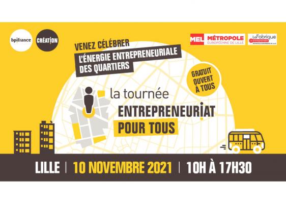 Bpifrance, la Métropole Européenne de Lille, et la Fabrique à Entreprendre ont le plaisir de vous informer que la Tournée Entrepreneuriat Pour Tous fera escale à Lille dans le cadre de MEL TOI DU TERRITOIRE