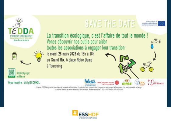 La transition écologique, c'est l'affaire de tout le monde - Présentation du projet TEDDALa Maison des association de Tourcoing organise un temps de présentation des outils pour aider toutes les associations à engager leur transition, réalisés avec les partenaires du projet TEDDA.