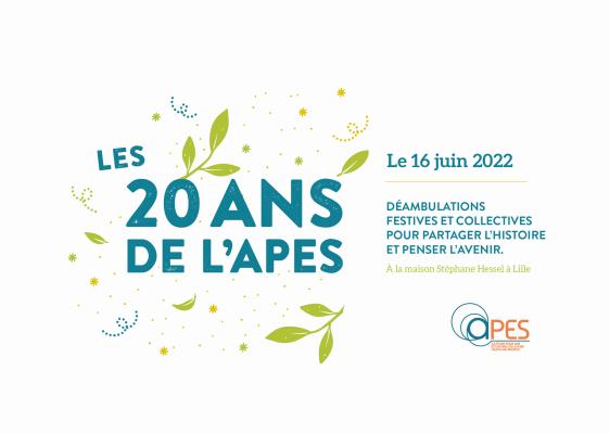 Au début des années 2000, des acteurs pionniers de la région Nord-Pas de Calais souhaitent se structurer autour de valeurs et de pratiques communes de l’économie solidaire. C’est ainsi que naît l’Apes, réseau d’acteurs.Le jeudi 16 juin prochain, l’Apes fête ses 20 ans, à partir de 16h, à la Maison Stéphane Hessel