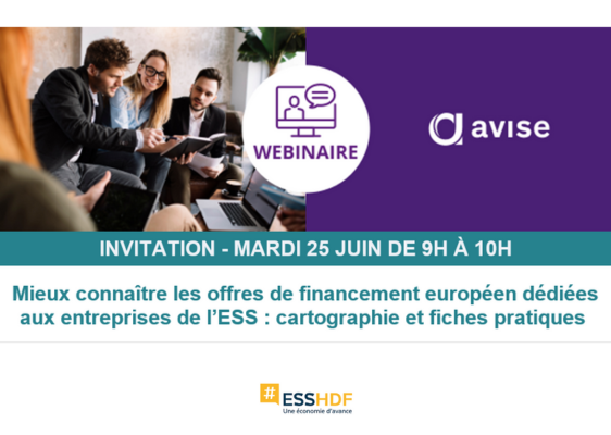 Mieux connaître les offres de financement européen dédiées aux entreprises de l’ESS : cartographie et fiches pratiquesL'Avise organise le mardi 25 juin, de 9h à 10h, un webinaire pour orienter les porteurs de projet et les accompagnateurs de l'ESS vers les offres de financement européen adaptées à leurs besoins et statuts juridiques.