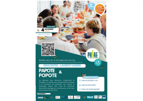 Pour le Papote & popote du 4 novembre 2025 nous vous proposons de venir échanger avec Laurent Gardin (Maître de conférences chez Université Polytechnique Hauts-de-France à Valenciennes) sur le sujet des financements associatifs, dans le cadre du mois de l’ESS.