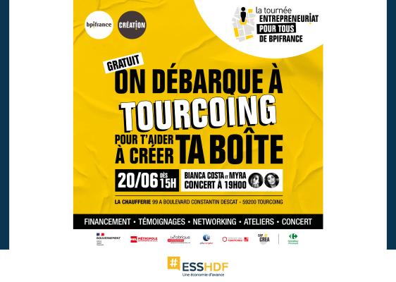 Participez à la Tournée Entrepreneuriat Pour TousBpifrance, en partenariat avec La Métropole Européenne de Lille, organise la Tournée Entrepreneuriat Pour Tous et fera escale à Tourcoing le mardi 20 juin 2023 de 15h à 21h.