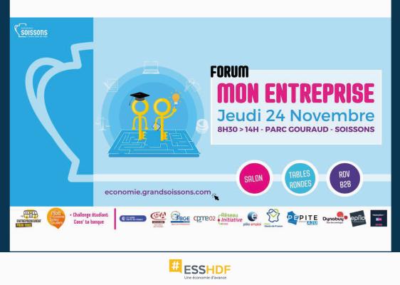 Pôle ESS et tables rondes au Forum "Mon Entreprise" GrandSoissonsCette année le Forum Mon Entreprise GrandSoissons s’inscrit dans le Mois de l’Economie Solidaire et Solidaire (ESS).