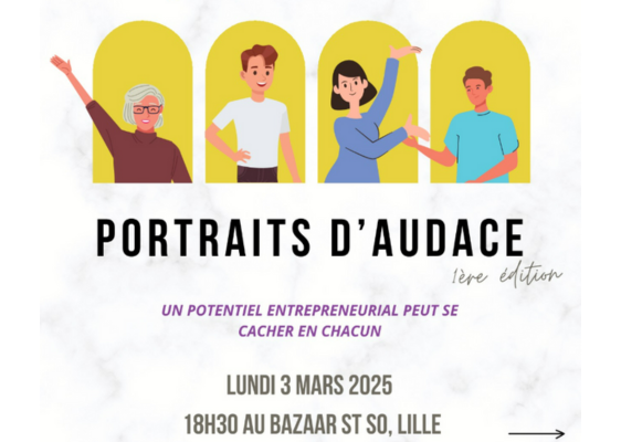 Evident ! l'incubateur d'Initiatives et Cité a le plaisir de vous convier à la 1ère édition des "Portraits d'Audace”, co-organisé avec GrandsEnsemble, coopérative d'activité et d'emploi à Lille, h'up entrepreneurs, Linklusion, Pépite Lille Hauts-de-France, Lulu dans ma rue et La Ruche®️.
