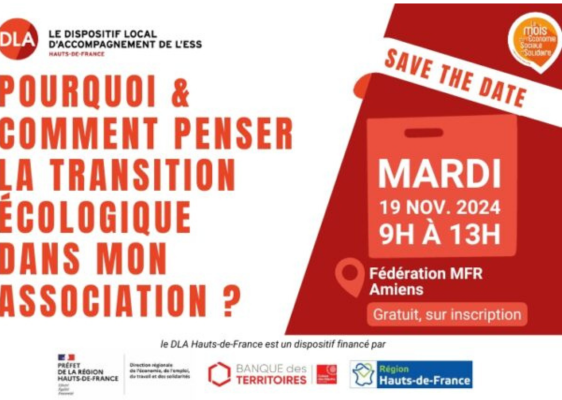 Les DLA des Hauts-de-France organisent donc une matinée dédiée à la transition écologique des associationsCet évènement se déroulera à Amiens, de 9h à 13h. L'objectif de la matinée est de permettre aux associations employeuses de participer à deux ateliers afin d'avoir deux idées de changements opérables plus ou moins rapidement. Si vous souhaitez poursuivre la réflexion, une table ronde expliquant comment le DLA peut vous soutenir sera proposée à la fin de la matinée.