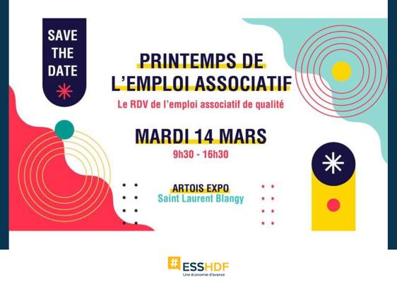 Printemps de l’emploi associatifActeurs et partenaires associatifs, participez au RDV régional pour l’emploi associatif de qualité le mardi 14 mars 2023 de 9h30 à 16h30 à Artois Expo à Saint Laurent Blangy.