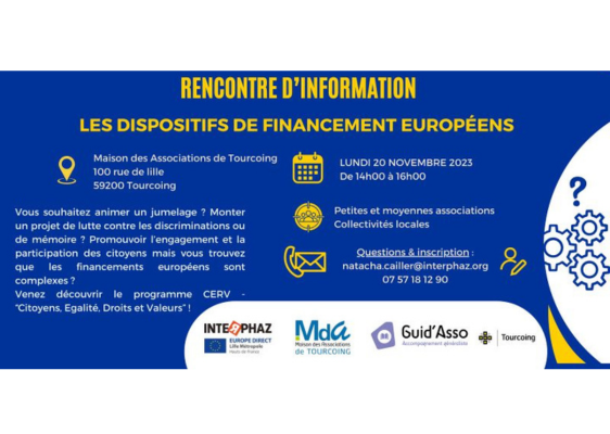 La Maison des Associations de Tourcoing et Interphaz - Centre Europe Direct Lille Métropole vous invitent à une rencontre d'information sur les dispositifs de financement européens :