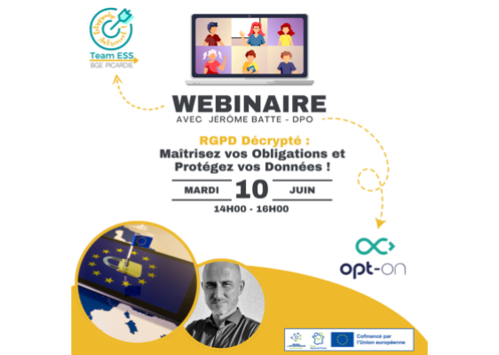 Rejoignez-nous pour un webinaire essentiel animé par Jérôme BATTE, Délégué à la Protection des Données chez OPT-ON. Ce rendez-vous est spécialement conçu pour les entrepreneurs qui souhaitent comprendre et maîtriser les enjeux du RGPD.