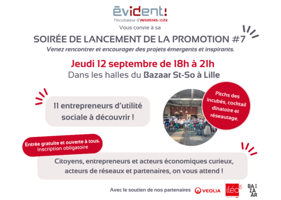 Soirée de lancement de la Promotion #7 de l'incubateur Evident !Cette soirée est l'occasion de rencontrer et encourager des projets émergents et inspirants.