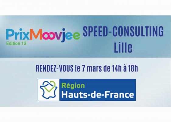 A l'occasion du Prix Moovjee 2022, une session de speed-consulting est organisé, avec le soutiende la région Hauts-de-France. Elle se déroule au Conseil régional des Hauts-de-France 151, avenue du président Hoover, 59000 Lille.
