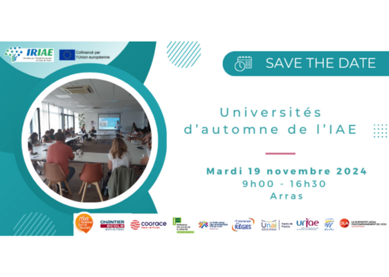 L'IRIAE Hauts-de-France et ses réseaux membres sont heureux de vous convier aux deuxièmes universités d'automne de l'IAE - Saisir les enjeux pour préparer 2025 -, le mardi 19 novembre 2024 de 9h00 à 16h30 à Artois Expo - Saint Laurent Blangy (62223).